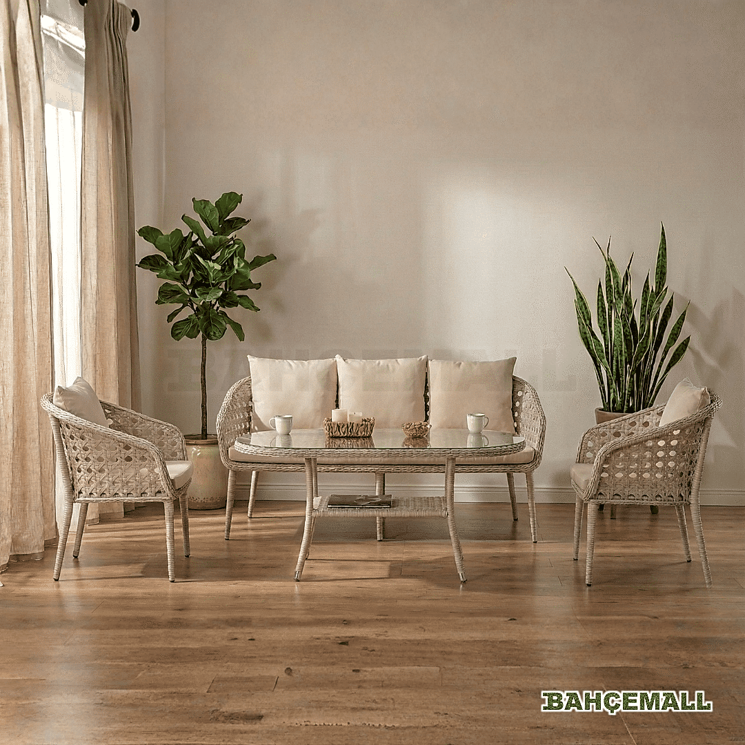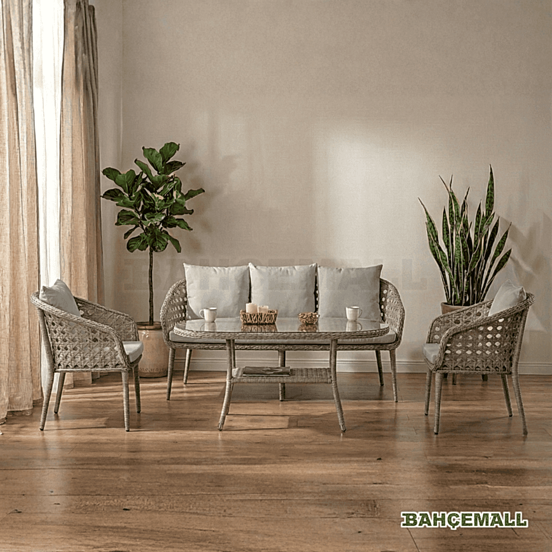• Bu Goody Bahçe Mobilyası, bir adet Sehpa ve iki adet Tekli ve bir adet İkili koltuktan oluşur.