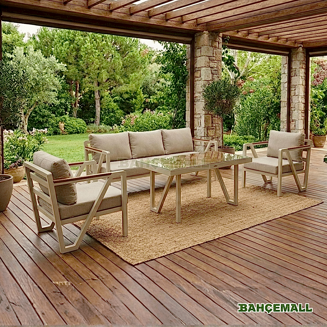 • Bu Otto Bahçe Mobilyası, bir adet Masa ve camı, iki adet Tekli ve bir adet Üçlü koltuktan oluşur.
