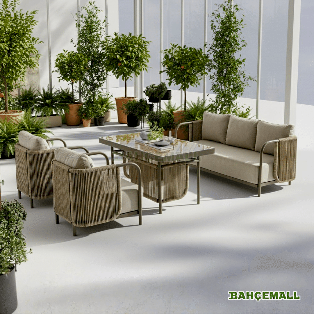 Bahçemall AMOR 3'lü Oturma Takımı Krem