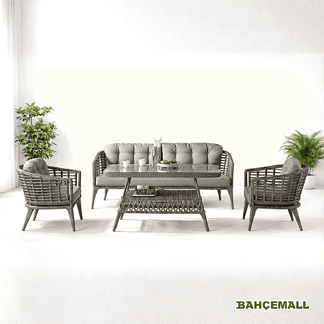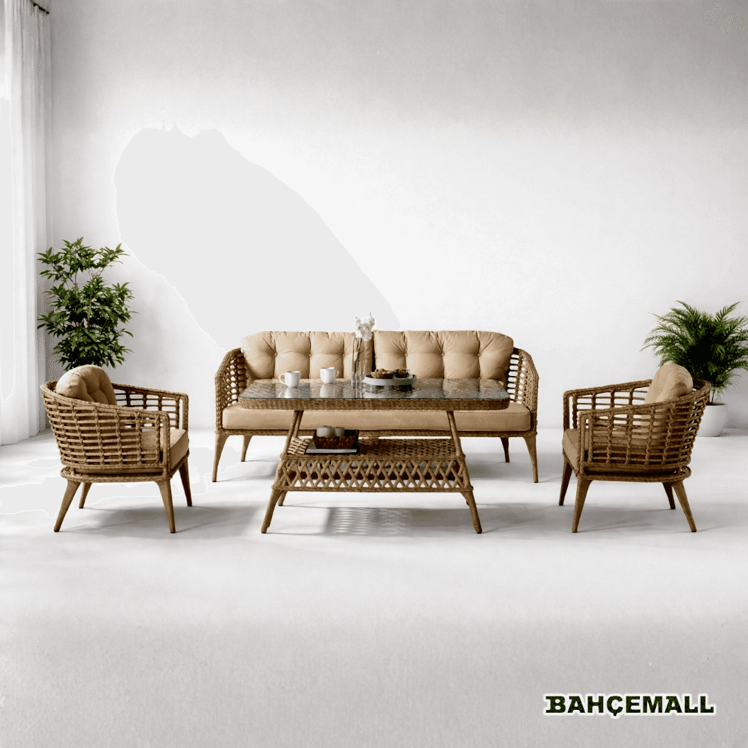 - Bu Efes Bahçe Mobilyası, bir adet Masa ve iki adet Tekli ve bir adet Üçlü koltuktan oluşur.