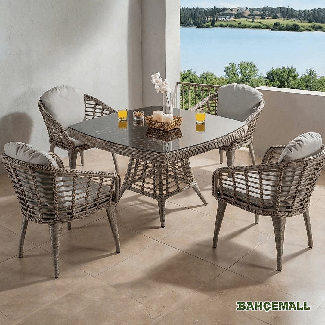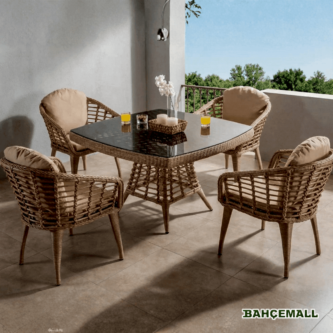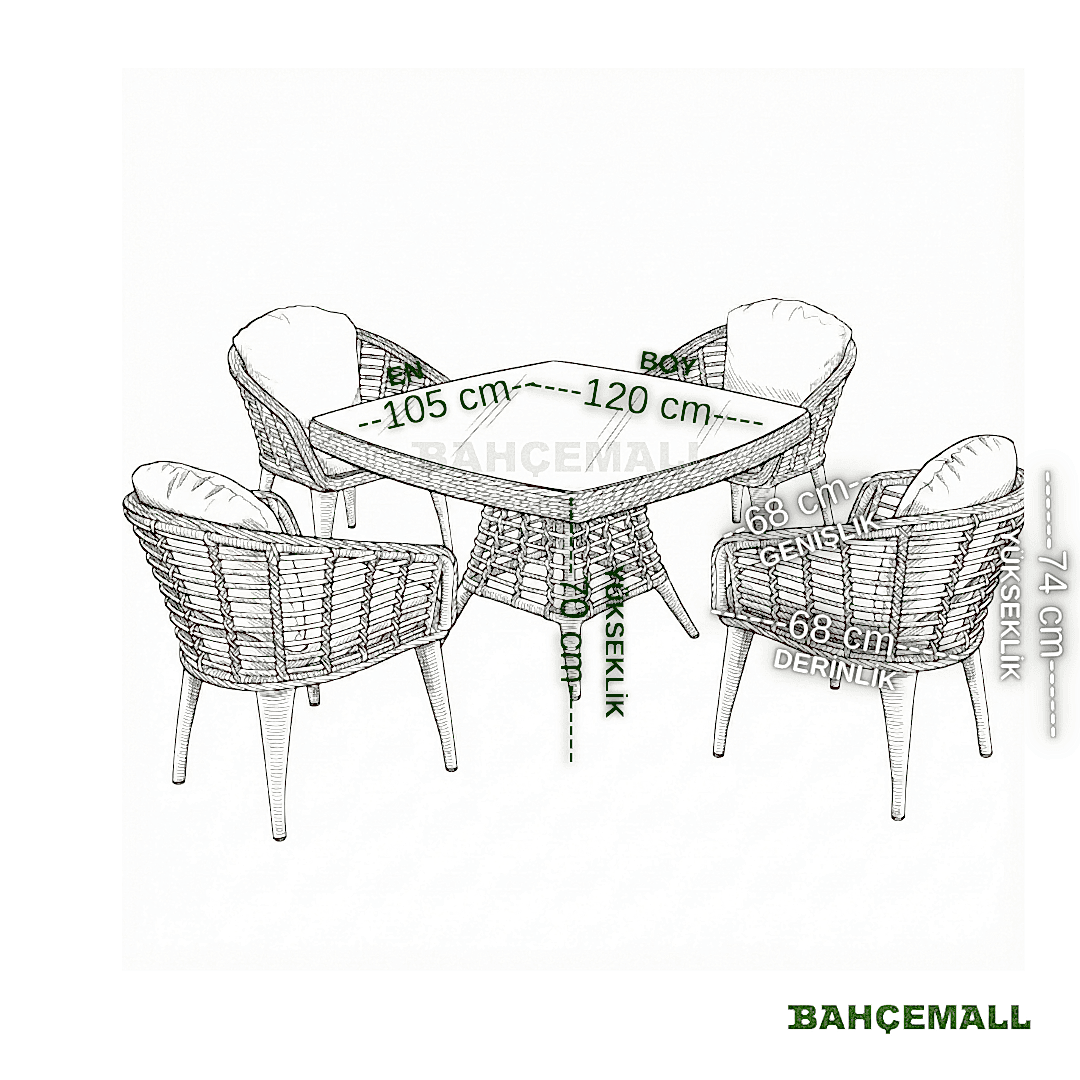 - Bu Efes Bahçe Mobilyası, bir adet Masa ve dört adet Tekli koltuktan oluşur.