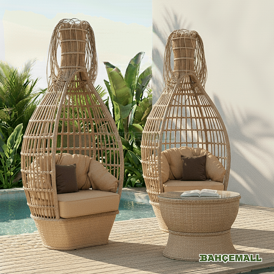- Bu Kokteyl Bahçe Mobilyası, bir adet Sehpa ve iki adet Tekli koltuktan oluşur.