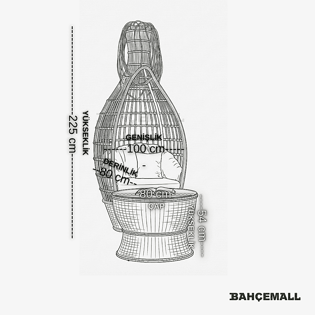 - Tekli Koltuk: Genişlik 100 x Derinlik 80 x Yükseklik 225 cm