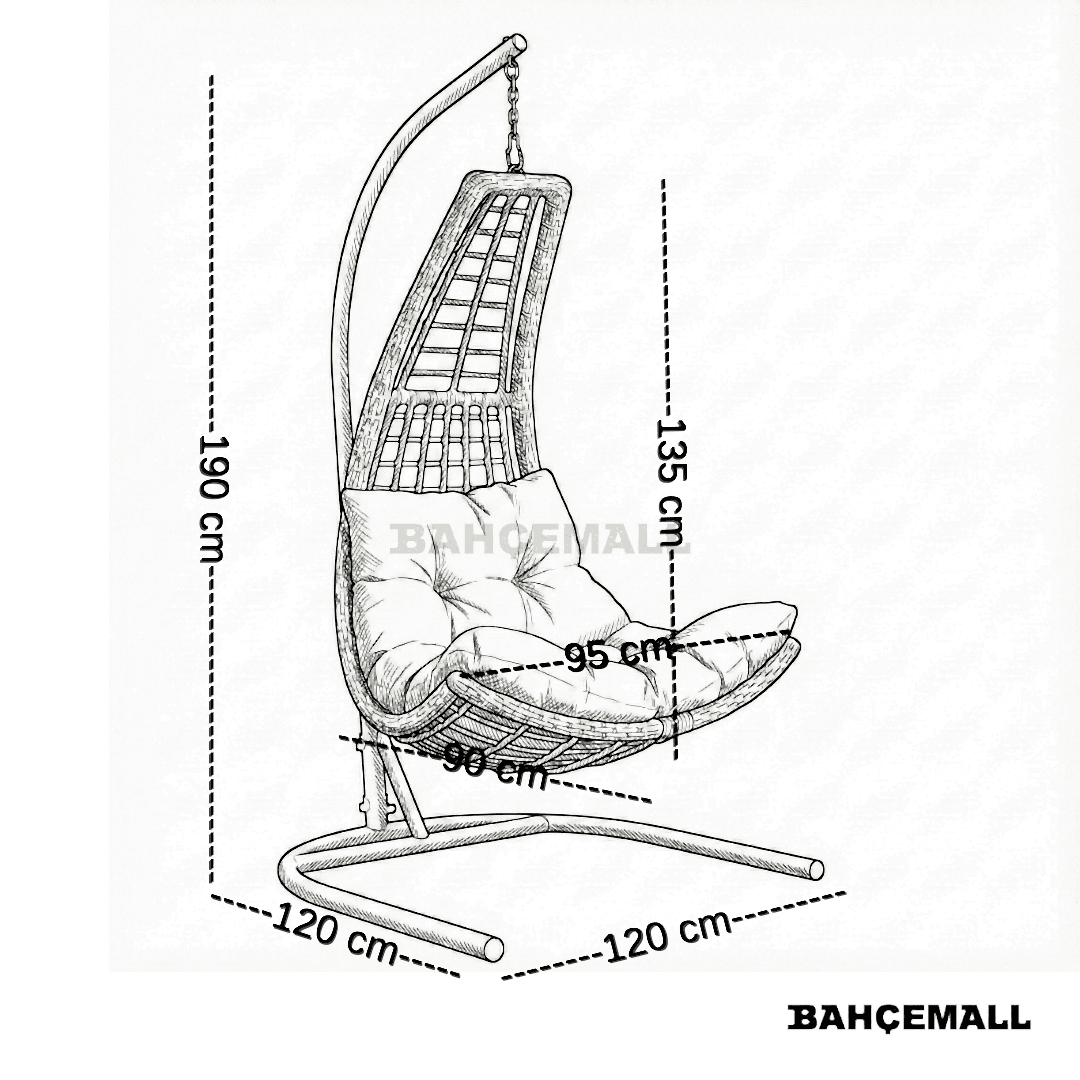 - Salıncak İskeleti : Genişlik 120 x Derinlik 120 x Yükseklik 190 cm